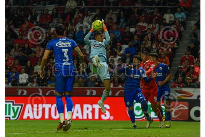 TOLUCA, ESTADO DE MÉXICO, 27ABRIL2024.- Kevin Mier portero de La Máquina Cementera del Cruz Azul, logrando la victoria ante los Diablos de Toluca, en el estadio Nemesio Diez, como parte de la jornada 17 del Torneo Clausura 2024 de la Liga MX, terminado el encuentro con un marcador 0-1. FOTO: CRISANTA ESPINOSA AGUILAR /CUARTOSCURO.COM