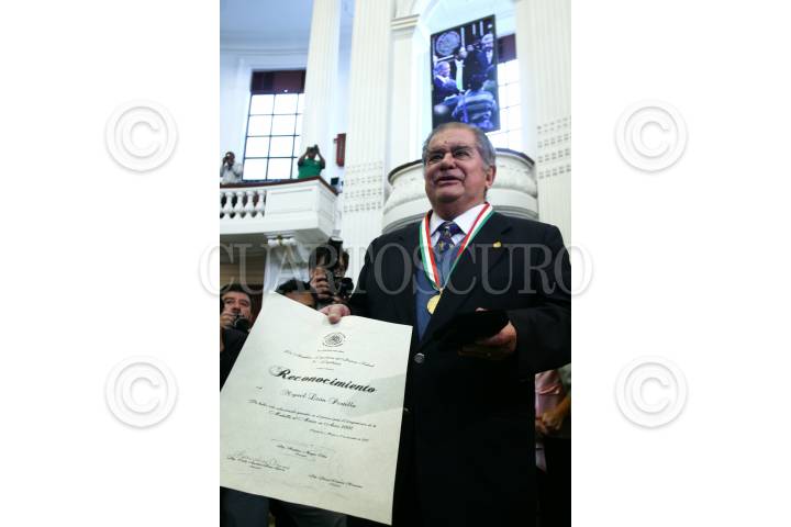 MÉXICO D.F., 09OCTUBRE2008.- En ceremonia solemne se realizo la entrega de la Medalla al Merito Cívico Eduardo Nery a Miguel León Portilla en la Cámara de Diputados . FOTO: GUILLERMO PEREA/CUARTOSCURO.COM