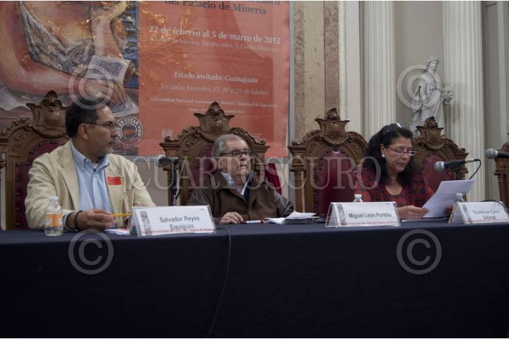 MÉXICO, D.F., 25FEBRERO2012.- Miguel león Portilla, conocido historiador, durante la presentación del libro "Cantares Mexicanos" de Eduardo Matos en la XXXlll Feria Internacional del Libro del Palacio de Minería. FOTO: PEDRO ANZA/CUARTOSCURO.COM