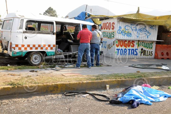 ECATEPEC, ESTADO DE MÉXICO, 22MARZO2010.- Una persona perdió la vida cuando en la combi que viajaba choco con un auto modelo mazda en el cruce de avenida López Portillo y carretera Lechería Texcoco, en la colonia Guadalupe Victoria municipio de Ecatepec. FOTO: LUIS CARBAYO/CUARTOSCURO.COM