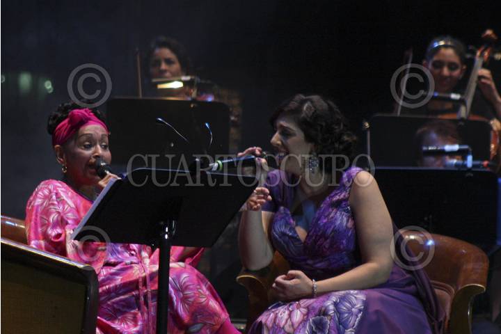 CUERNAVACA, MORELOS., 07MARZO2013.- Las cantantes Omara Portuondo y Regina Orozco, se presentaron en la plaza de armas del centro de Cuernavaca con el espectáculo "Pedazos del Corazón". FOTO: ALMA LAFAYET /CUARTOSCURO.COM