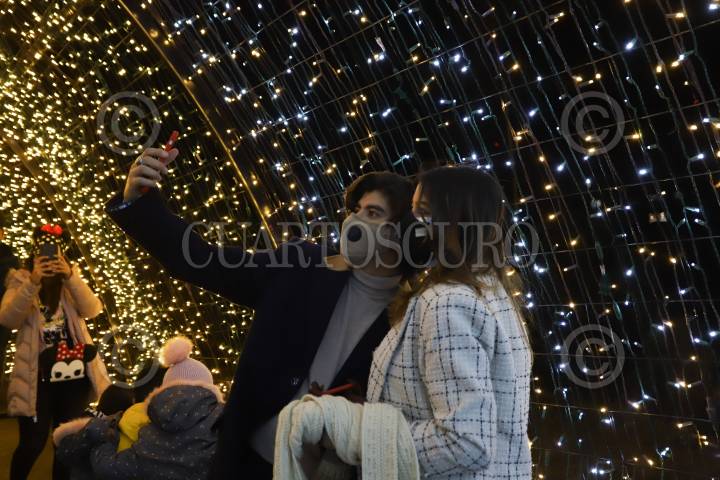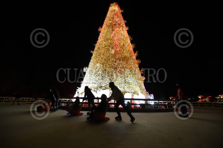 Asistentes disfrutan durante la apertura del parque temático “Navidalia” en el Parque Alameda Poniente de Santa Fe.