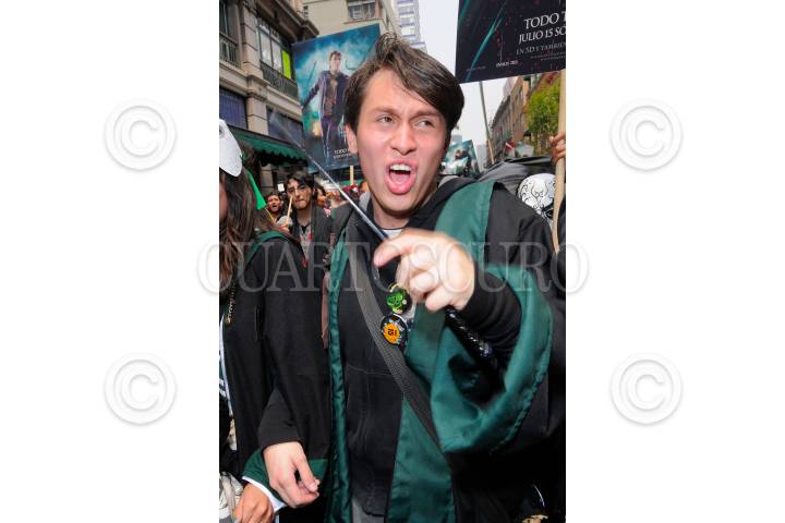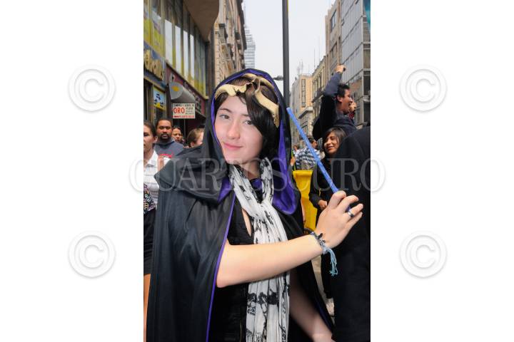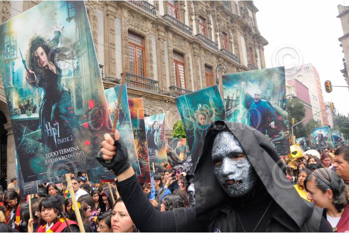 MÉXICO, D.F., 09JULIO2011.- Fanáticos de la saga literaria y cinematográfica, Harry Potter, de la inglesa, J.K. Rowling, marcharon caracterizados como hechizeros, el día de hoy del Monumento a la Revolución hasta el Zócalo capitalino, en vísperas del estreno de la última película el 15 de Julio a nivel nacional. FOTO: FRANCISCO RODRÍGUEZ/CUARTOSCURO.COM
