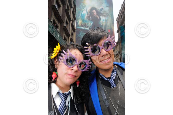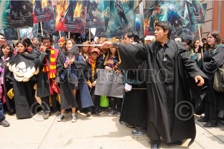 PUEBLA, PUEBLA, 14JULIO2011.- Cientos de fanáticos de Harry Potter, se reunieron en los diversos complejos de cine de la ciudad, disfrazados de los personajes de la historia del conocido mago Hogwarts, para presenciar la premier de la última parte de la saga Harry Potter y las Reliquias de la Muerte parte 2. FOTO: FRANCISCO GUASCO/CUARTOSCURO.COM