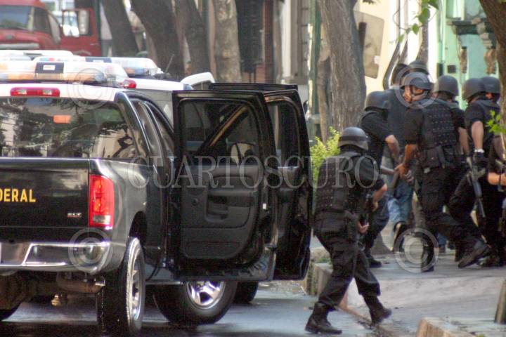 MEXICO, D.F. 26ABRIL2006.- Elementos de la PFP Practican en la Colonia San Rafael para el video que pasarán en televisión sobre la campaña de la lucha contra el narcomenudeo. FOTO: Pedro Marrufo/CUARTOSCURO.COM