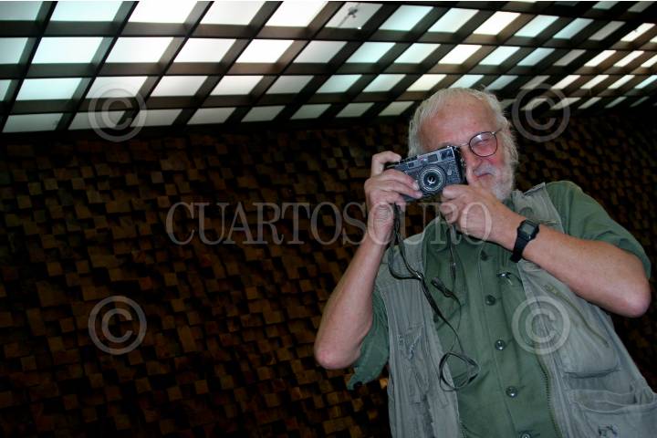 MÉXICO, D.F., 01ABRIL2009.- El legendario maestro de la fotografía, miembro de la agencia Magnum, de nacionalidad checa, Josef koudelka, durante la exposición Invasión 68: Praga que se exhibe en el Centro Cultural Tlatelolco con una selección de 74 imágenes elegidas por el mismo autor que testimonian los días convulsos en un relato visual sin precedentes. FOTO: RODOLFO ANGULO/CUARTOSCURO.COM
