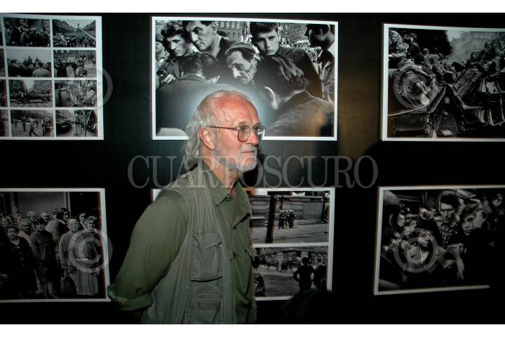 MÉXICO, D.F., 01ABRIL2009.- El legendario maestro de la fotografía, miembro de la agencia Magnum, de nacionalidad checa, Josef koudelka, recorre la exposición Invasión 68: Praga que se exhibe en el Centro Cultural Tlatelolco con una selección de 74 imágenes elegidas por el mismo autor que testimonian los días convulsos en un relato visual sin precedentes. FOTO: RODOLFO ANGULO/CUARTOSCURO.COM