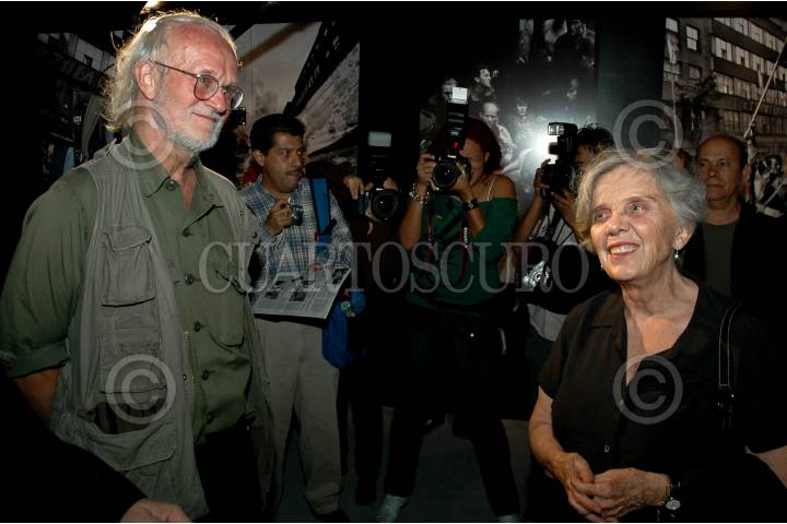 MÉXICO, D.F., 01ABRIL2009.- El legendario maestro de la fotografía, miembro de la agencia Magnum, de nacionalidad checa, Josef koudelka, conversa con la escritora Elena Poniatowska durante un recorrido por la exposición del fotografo titulada: Invasión 68: Praga que se exhibe en el Centro Cultural Tlatelolco con una selección de 74 imágenes elegidas por el mismo autor que testimonian los días convulsos en un relato visual sin precedentes. FOTO: RODOLFO ANGULO/CUARTOSCURO.COM