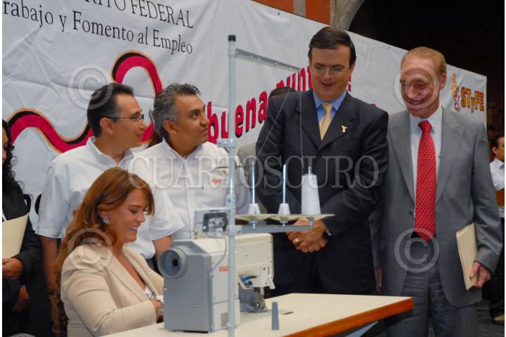 MÉXICO, D.F., 10JUNIO2008.- El Jefe de Gobierno Capitalino Marcelo Ebrard asistió a la presentación de la segunda etapa del programa "Que buena Puntada" En el Museo de la Ciudad, fue acompañado por su señora esposa Mariagna Pratts y el Secretario del Trabajo Benito Mirón. FOTO: FELIPE CASTELLANOS/CUARTOSCURO.COM