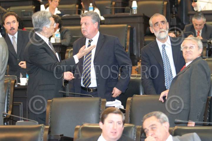 Los senadores Manuel Bartlett, Jorge Zermaño, Diego Fernandez de Cevallos y Juan José Rodríguez Pratts conversan durante la Sesión del senado de la República. FOTO: Nelly Salas/CUARTOSCURO.COM