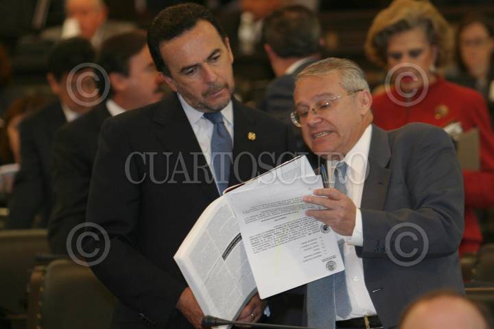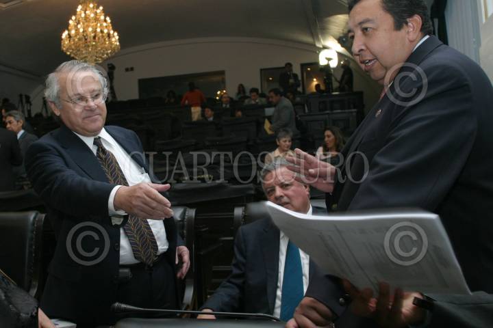 MEXICO, D.F. 21JUNIO2006.- Los senadores Juan Jose Rodriguez Pratts y César Jauregui durante la sesión de la comisión permanente en la cámara de senadores. FOTO: Nelly Salas/CUARTOSCURO.COM