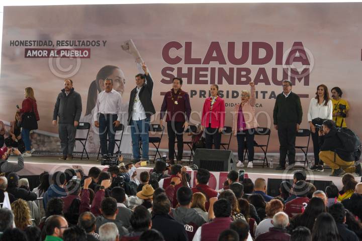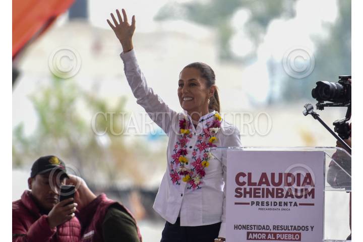 HUIXQUILUCAN, EDOMEX, 07ENERO2024. - Claudia Sheinbaum, precandidata única de Morena a la presidencia de la República, durante su acto de precampaña en el Estado de México. FOTO: DANIEL AUGUSTO /CUARTOSCURO.COM
