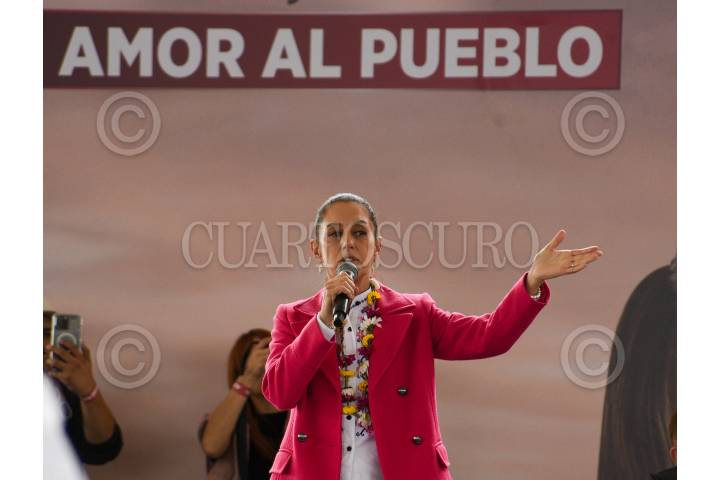 HUIXQUILUCAN, EDOMEX, 07ENERO2024. - Claudia Sheinbaum, precandidata única de Morena a la presidencia de la República, habla con los habitantes de Huixquilucan durante su mitin. FOTO: DANIEL AUGUSTO /CUARTOSCURO.COM