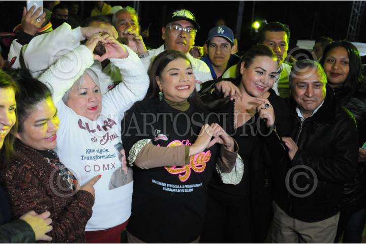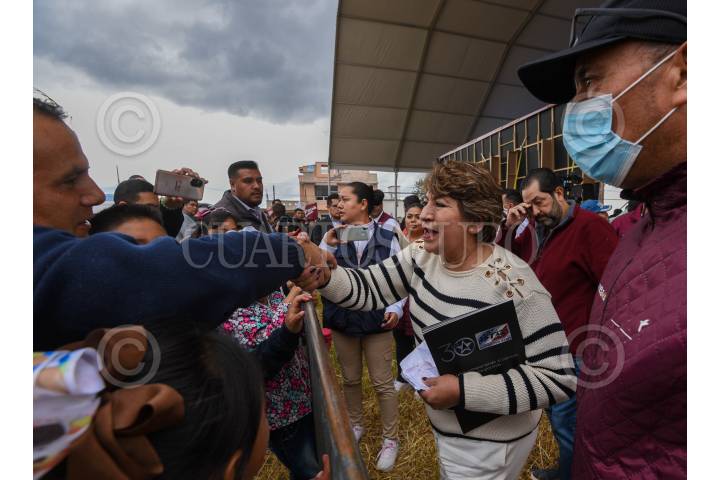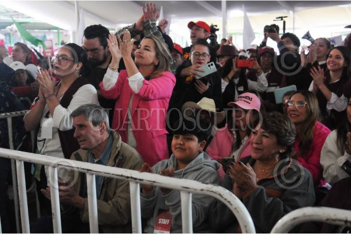 ZINACANTEPEC, ESTADO DE MÉXICO, 02DICIEMBRE2023.- Delfina Gomez Gobernadora del Estado de México estuvo presente en el encuentro con la militancia de Claudia Sheinbaum Pardo Precandidata Única a la Presidencia de la República por MORENA, PT Y PVEM en el municipio de Zinacantepec, acompañada. FOTO: CRISANTA ESPINOSA AGUILAR /CUARTOSCURO.COM