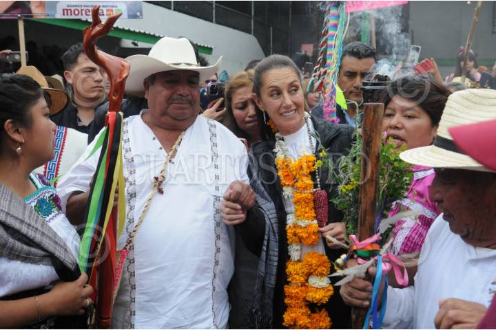 HUIXQUILUCAN, EDOMEX, 07ENERO2024.- Claudia Sheinbaum, precandidata única de Morena a la presidencia de la República, fue recibida por habitantes del municipio quienes realizaron un ritual. FOTO: DANIEL AUGUSTO / CUARTOSCURO.COM