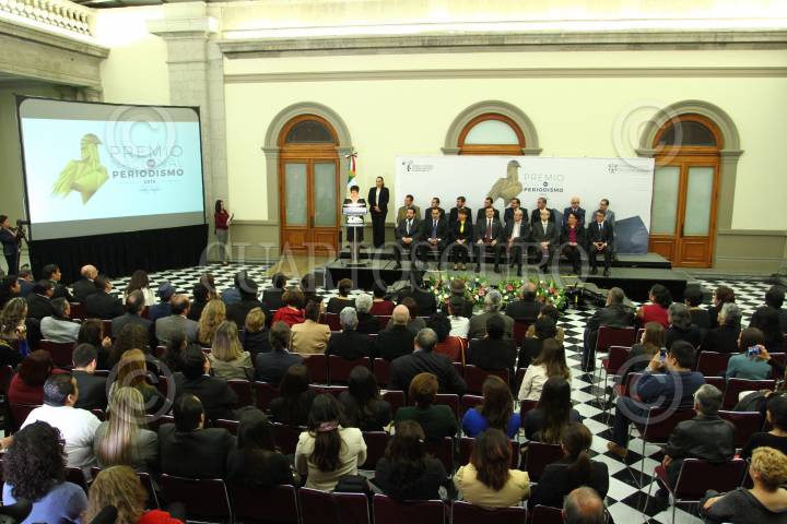 CIUDAD DE MÉXICO, 14OCTUBRE2016.- Esta noche, el Comité Ciudadano del Premio Nacional de Periodismo (PNP) galardonó a los mejores trabajos periodísticos en las categorías de Reportaje, Crónica, Fotografía, Caricatura, Científico, Entrevista y Trayectoria. La ceremonia se llevó a cabo en el Museo del Castillo de Chapultepec. FOTO: ADOLFO VLADIMIR /CUARTOSCURO.COM