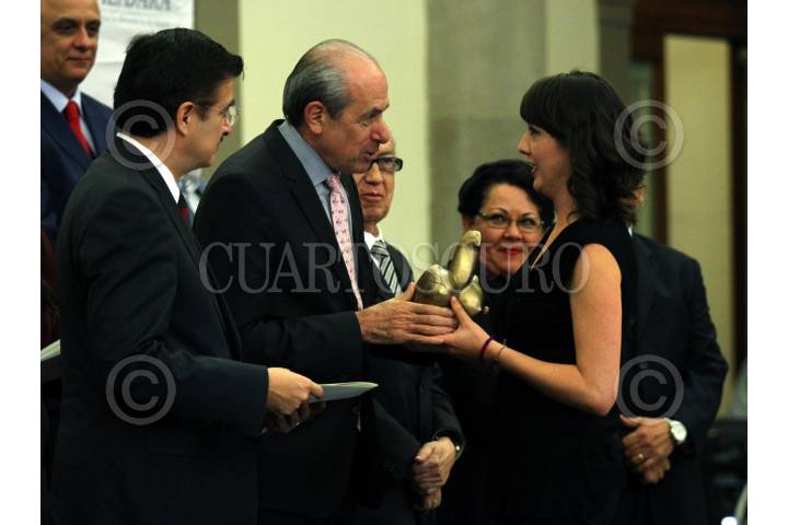 CIUDAD DE MÉXICO, 14OCTUBRE2016.- Laura Castellanos, ganadora del premio por mejor Reportaje de Investigación por su trabajo "Fueron los federales" publicado en Aristegui Noticias y Proceso, durante la entrega del Premio Nacional de Periodismo a los mejores trabajos periodísticos en el país. El Comité Ciudadano del PNP, en el Museo del Castillo de Chapultepec, se entregó el reconocimiento a los mejores trabajos en Reportaje, Crónica, Fotografía, Caricatura, científico, entrevista y trayectoria. FOTO: ADOLFO VLADIMIR /CUARTOSCURO.COM