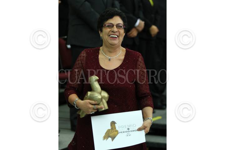 CIUDAD DE MÉXICO, 14OCTUBRE2016.- Sara Lovera López, periodista desde 1969, con trabajo en perspectiva de género, recibió el premio a Trayectoria periodística del Premio Nacional de Periodismo a los mejores trabajos periodísticos en el país. El Comité Ciudadano del PNP, en el Museo del Castillo de Chapultepec, se entregó el reconocimiento a los mejores trabajos en Reportaje, Crónica, Fotografía, Caricatura, científico, entrevista y trayectoria. FOTO: ADOLFO VLADIMIR /CUARTOSCURO.COM