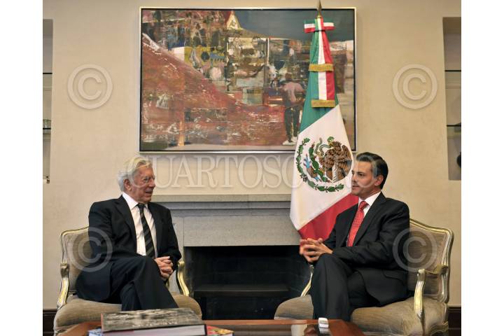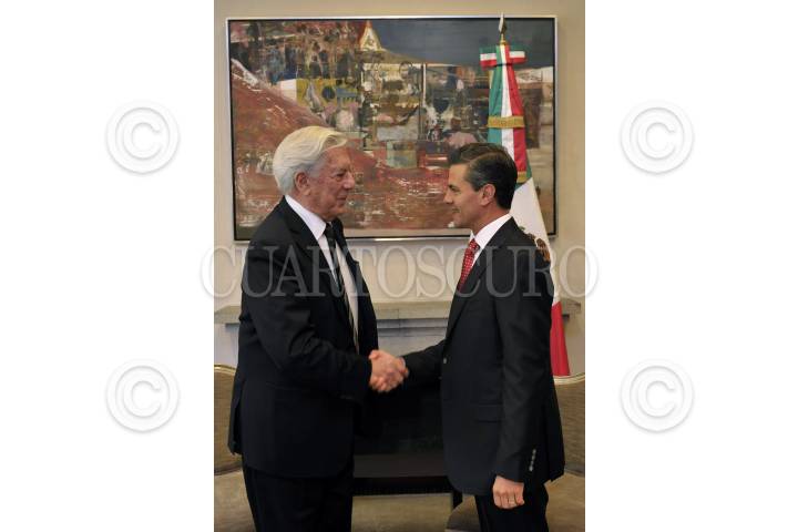 MÉXICO, D. F., 29NOVIEMBRE2013.- Enrique Peña Nieto, presidente de México recibió hoy en la Residencia Oficial de Los Pinos al destacado escritor peruano, Premio Nobel de Literatura, Mario Vargas Llosa, quien se encuentra en México para atender distintas actividades relacionadas con la promoción de su nueva obra. FOTO: PRESIDENCIA / CUARTOSCURO.COM