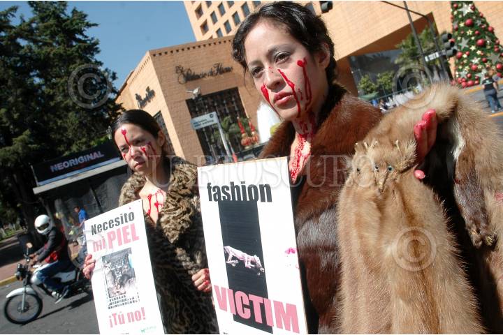 MÉXICO D.F., 10NOVIEMBRE2007.- Integrantes de la organización Anima Naturalis se manifiestan por la matanza de animales para crear prendas finas de piel a las afueras de un centro comercial en la colonia Polanco. FOTO: RODOLFO ANGULO/CUARTOSCURO.COM