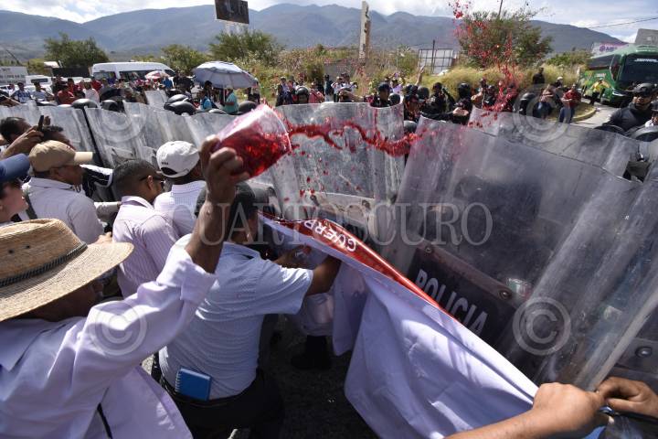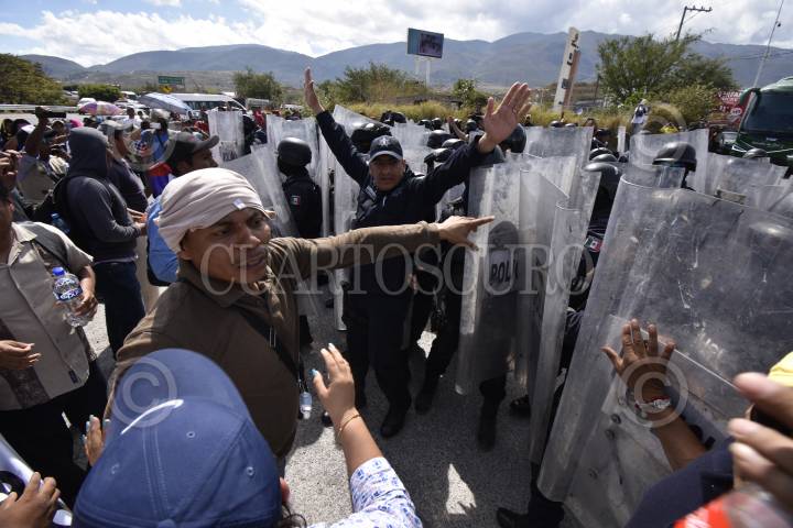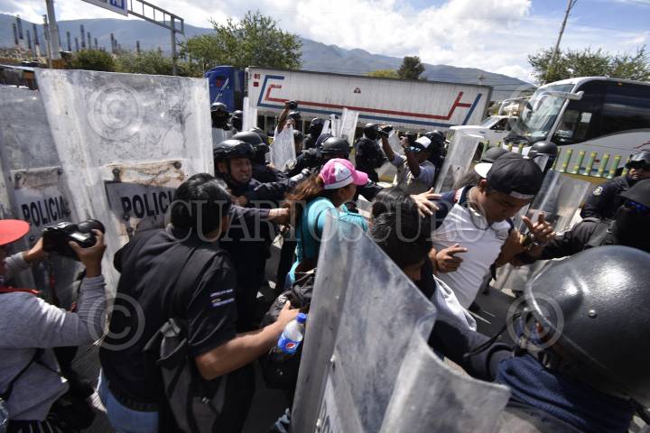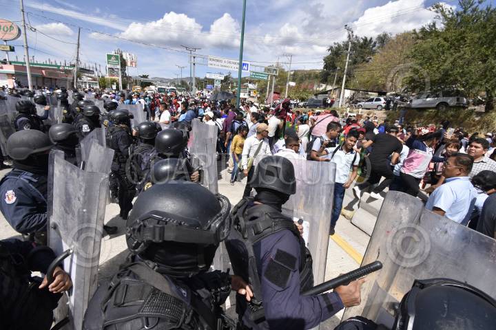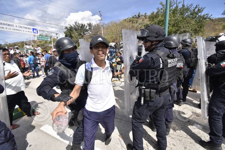 Policías antimotines desalojaron alumnos y padres de familia que bloqueaban la Autopista del Sol
