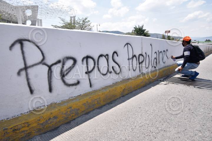 Protesta de profesores de preparatorias populares en Chilpancingo, Guerrero, para exigir al gobernador que se avance en el proceso de reconocimiento oficial de los más de 100 planteles de este sistema.