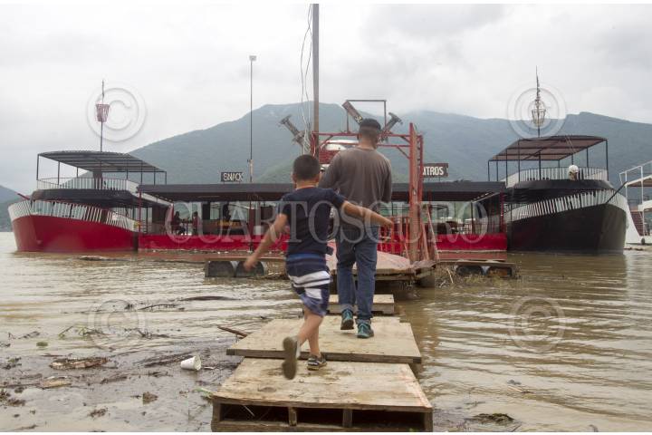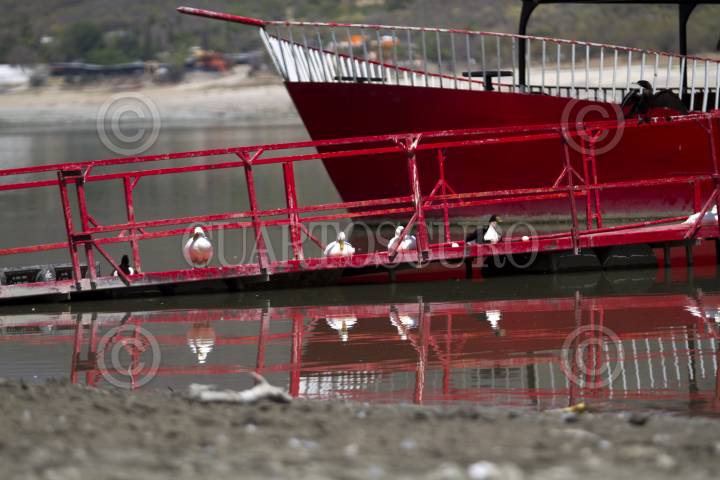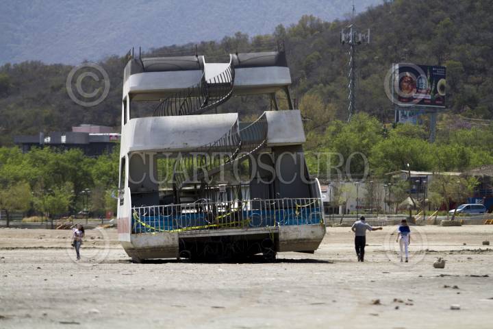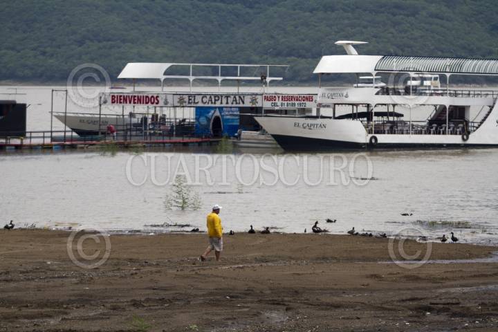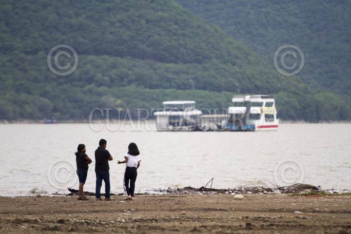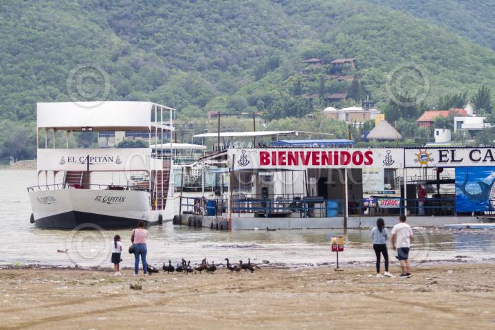 Barcos y paseo recreativo en la Presa de la Boca es afectado por los bajos niveles de agua en la Presa de la Boca