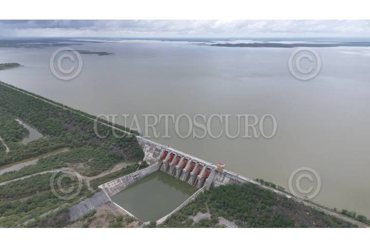 NUEVO LEÓN, 25JUNIO2024.- El gobernador de Nuevo León, Samuel García, realizó un sobrevuelo por las diferentes presas de la entidad, acompañado del director de Organismo Cuenca del Río Bravo de la Conagua, Luis Carlos Alatorre. Tras el paso de la tormenta tropical "Alberto", al corte del 24 de junio, las presas registran el siguiente llenado: La Boca: 94.18 % (32.962 millones de metros cúbicos), Presa Cerro Prieto: 53% (161.346 millones de metros cúbicos), Presa El Cuchillo: 82% (913.012 millones de metros cúbicos), Presa Libertad 15% (220 millones de metros cúbicos). FOTO: PRENSA NUEVO LEÓN / CUARTOSCURO.COM