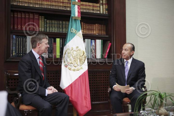 MEXICO D.F. A 27MARZO2012.- El presidente Felipe Calderón, se reunió en la residencia Oficial de Los Pinos con el Gobernador del estado de Colorado de los Estado Unidos de América, John Hickenlooper. FOTO: IMPERIO RESENDIZ /CUARTOSCURO.COM