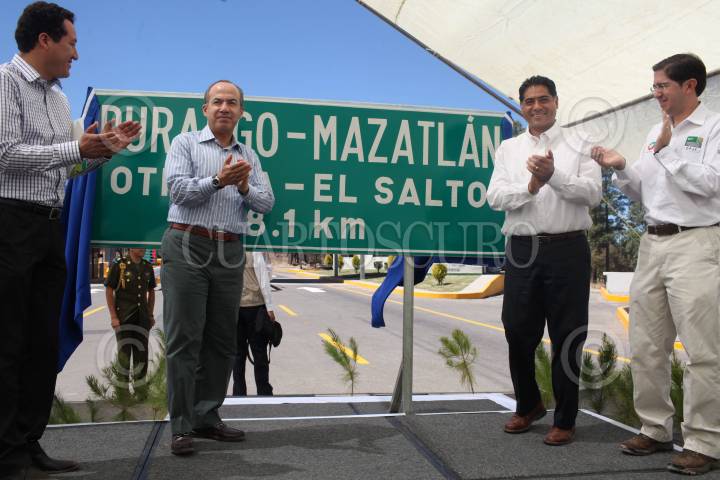 DURANGO, DURANGO, 22MARZO2011.- Felipe Calderón Hinojosa, presidente de México, Jorge Herrera Caldera, gobernador de Durango y Dionisio Pérez-Jácome, secretario de Comunicaciones y Transportes (SCT), inauguraron el tramo carretero Otinapa-El Salto de la autopísta Durango-Mazatlan. FOTO: ALFREDO GUERRERO/CUARTOSCURO.COM