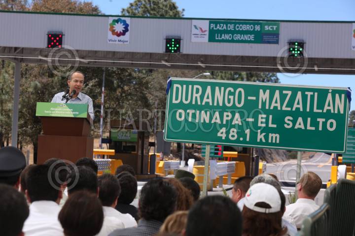 DURANGO, DURANGO, 22MARZO2011.- Felipe Calderón Hinojosa, presidente de México, inauguró el tramo carretero Otinapa-El Salto de la autopísta Durango-Mazatlan. FOTO: ALFREDO GUERRERO/CUARTOSCURO.COM