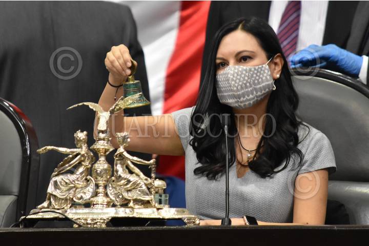 La diputada Laura Angélica Rojas toca la campana para iniciar la sesión.