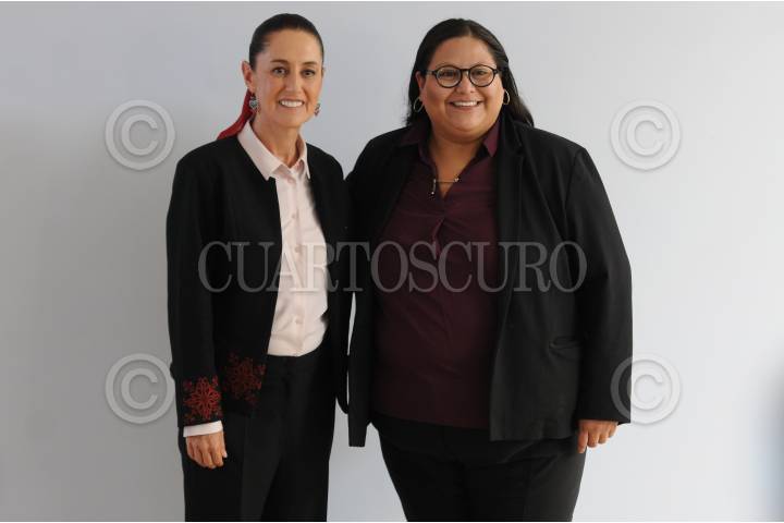 CIUDAD DE MÉXICO, 19AGOSTO2024. - Claudia Sheinbaum, presidenta electa y Citlalli Hernández, futura titular de la Secretaría de la Mujer, se toman una fotografía al término de la conferencia. FOTO: DANIEL AUGUSTO /CUARTOSCURO.COM