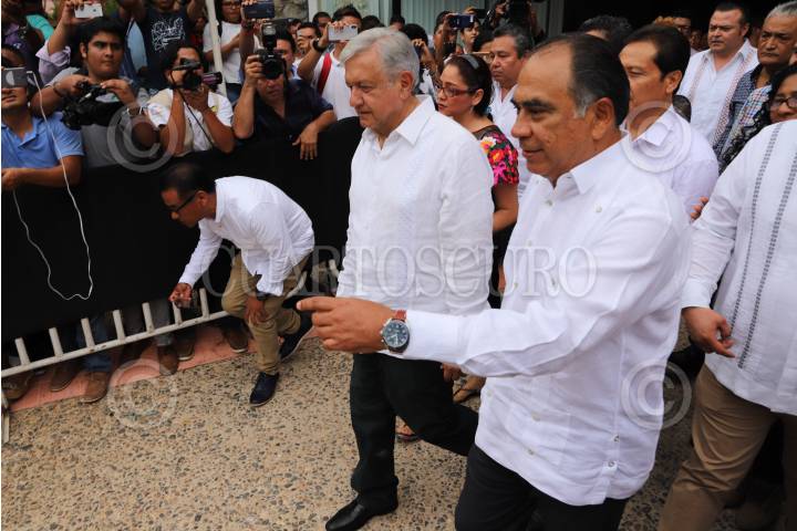 TUXTLA GUTIÉRREZ, CHIAPAS, 27AGOSTO2018.- Andrés Manuel López Obrador, Presidente Electo de México, encabezó la puesta en marcha del Foro de Consulta Estatal Participativa en Chiapas. A la cita también asistieron Estebán Moctezuma, designado como el futuro secretario de Educación Pública, y Manuel Velasco, gobernador de la entidad. FOTO. JACOB GARCÍA / CUARTOSCURO.COM