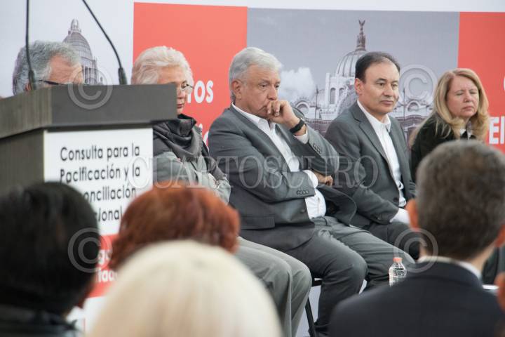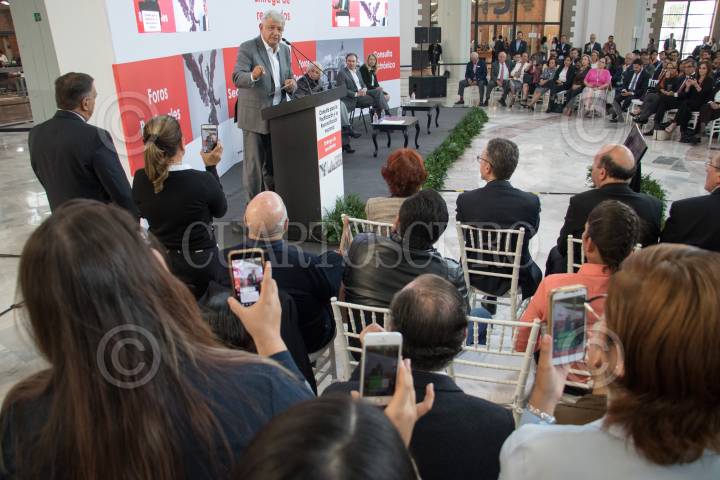 CIUDAD DE MÉXICO, 24OCTUBRE2018.- Andrés Manuel López Obrador, presidente electo de México, clausuró los foros y recibió la entrega de resultados de la Consulta para la Pacificación y la Reconciliación Nacional llevado acabo en el archivo general de la nación. FOTO: SAÚL LÓPEZ /CUARTOSCURO.COM