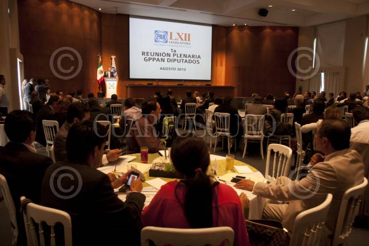 MÉXICO, D.F. 21AGOSTO2012.-Gustavo Madero, Presidente Nacional del PAN, y Luis Alberto Villareal, próximo líder de la Bancada del PAN en la cámara de Diputados se reunieron con los diputados electos en la Primera Reunion Plenaria del Grupo Parlamentario del PAN. FOTO: JUAN PABLO ZAMORA /CUARTOSCURO.COM