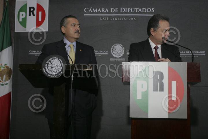 MÉXICO, D.F. 27NOVIEMBRE2012.- Diputados federales del PRI se reunieron con el presidente nacional de ese partido, para determinar sus posturas antes de la toma de protesta de Enrique Peña Nieto. Al final el coordinador de los diputados priistas Manlio Fabio Beltrones, y Pedro Joaquin Coldwelt ofrecieron conferencia de prensa. FOTO: JUAN PABLO ZAMORA /CUARTOSCURO.COM