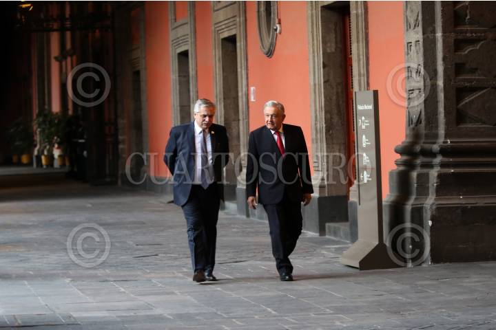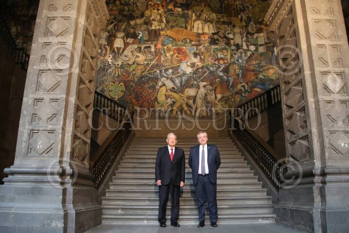 Andrés Manuel López Obrador, Presidente de México, y Alberto Fernández, Presidente de Argentina, recorrieron los murales y salones de Palacio Nacional, durante la visita del mandatario argentino a nuestro país que durará tres días.
