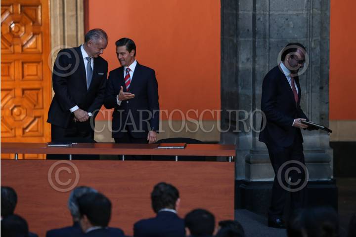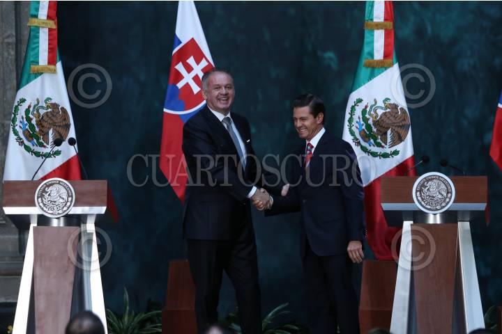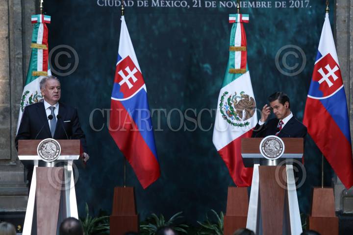 CIUDAD DE MÉXICO, 21NOVIEMBRE2017.- Enrique Peña Nieto, presidente de México y Andrej Kiska, presidente de la República Eslovaca, realizaron declaración conjunta ante los medios de comunicación como parte de su visita de Estado. FOTO: ADOLFO VLADIMIR /CUARTOSCURO.COM