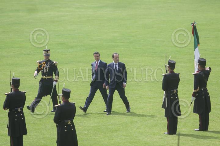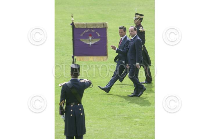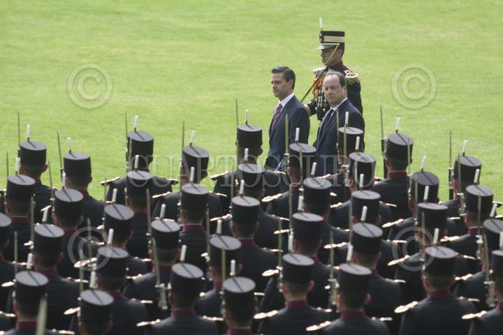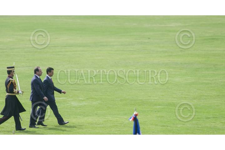 MÉXICO, DF., 10ABRIL2014. Francois Holande, Presidente de Francia y Enrique Peña Nieto, Presidente de México, pasaron revista a la guardia de honor con motivo de la visita del mandatario galo en el Campo Marte. FOTO: MOISÉS PABLO /CUARTOSCURO.COM