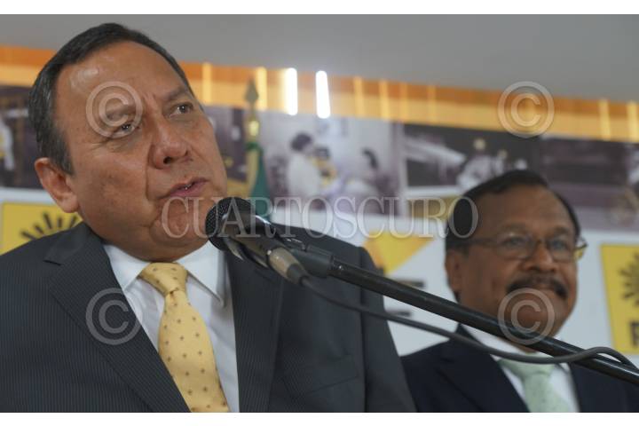 MÉXICO, D.F., 08JULIO2013.- El presidente del PRD Jesús Zambrano y Alejandro Sanchez Camacho realizaron una conferencia de prensa para denunciar "el cochinero" y los delitos electorales que supuestamente se llevarón a cabo en las elecciones, particularmente en los estados de Baja Californa, Tijuana y Cancún. FOTO: ALEJANDRO NEYRA / CUARTOSCURO.COM