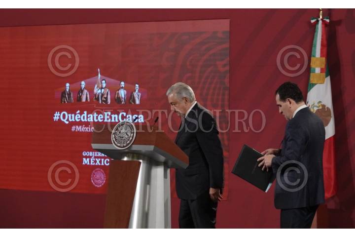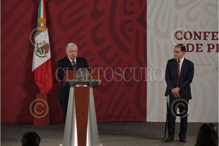 Andrés Manuel López Obrador, presidente de México acompañado de Arturo Herrera, secretario de Hacienda y Crédito público durante la conferencia matutina que se lleva a cabo en Palacio Nacional
