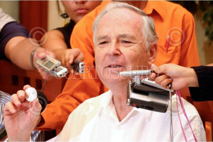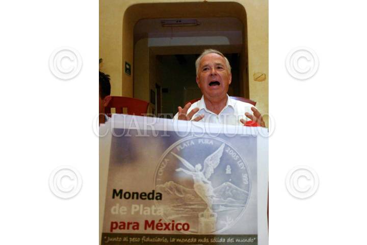 OAXACA, OAXACA, 23MAYO2008.- Hugo Salinas Price, fundador de la Asociación Pro Plata de México, presentó su proyecto de iniciativa que plantea hacer moneda de plata de curso legal la “Onza Libertad”, durante una conferencia de prensa en la capital oaxaqueña. FOTO: MAX NÚÑEZ/CUARTOSCURO.COM
