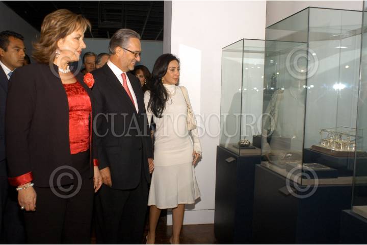 MÉXICO, D.F. 08SEPTIEMBRE2006.- Ana Teresa Aranda, Secretaria de Desarrollo Social; Ricardo Salinas Pliego, Presidente de Grupo Salinas y su esposa, María Laura Medina de Salinas durante el corte del listón inaugural de la exposición del "Tercer Premio de la Plata Hugo Salinas Price". FOTO: TV AZTECA/CUARTOSCURO.COM