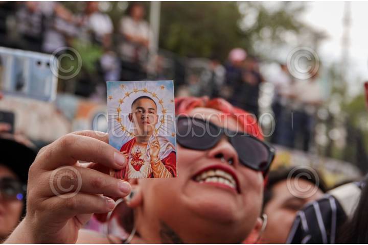 CIUDAD DE MÉXICO, 23MARZO2025.- Una mujer sostiene una imagen de "Neto Peña Santo" durante el concierto de Neto Peña en el Festival "Primavera en Chapultepec 2025" en parque Parcur, primera sección de Chapultepec. FOTO: MAGDALENA MONTIEL/CUARTOSCURO.COM