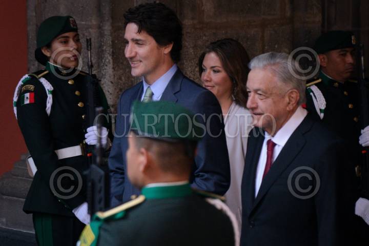 Andrés Manuel López Obrador, presidente de México, encabezó la ceremonia oficial de bienvenida a Justin Pierre James Trudeau, primer ministro de Canadá, llevada a cabo en el Patio de Honor de Palacio Nacional. En el evento estuvieron presentes las esposas de los mandatarios: Beatriz Gutiérrez Müller y Sophie Grégorie.