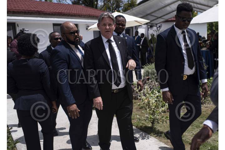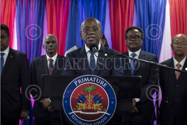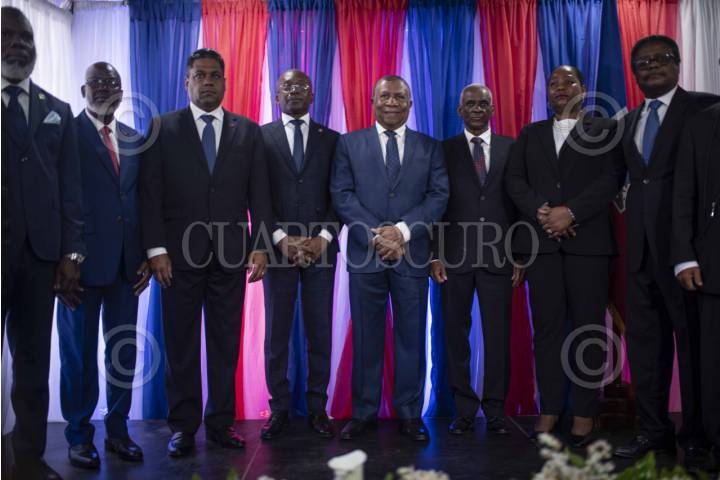 PUERTO PRÍNCIPE, HAITÍ, 25ABRIL2024.- Durante una ceremonia celebrada más de un mes después de la dimisión del ex primer ministro Ariel Henry, los nueve miembros del Consejo Presidencial de Transición de Haití asumieron la Jefatura del Estado a su vez que se nombró a Michel Patrick Boisvert como Primer Ministro interino. El ex primer Ministro Ariel Henry, desde Estados Unidos, anunció formalmente su renunica. Miles de haitianos han abandonado el país en los últimos meses a causa de las crecientes olas de violencia. De enero a Marzo del presente año, más de 2500 personas han sido asesinadas o heridas fruto de la violencia y disputa de los márgenes urbanos entre dichos grupos y la policía nacional. La inestabilidad política y la violencia urbana que precedía la renuncia, en marzo del presente año, del ex primer ministro Arie Henry e, incluso, el asesinato en julio de 2021 del entonces presidente haitiano, Jovenel Moise, se han recrudecido en los últimos meses. Después de ser escenario de disparos e intentos de apropiación, el aeropuerto principal del país, el de Puerto Príncipe, permanece cerrado desde prinicpios de marzo, los grupos armados han ataco los prinicpales edificios gubernamentales, quemado estaciones de policía, y de las dos mayores prisiones de la capital han sido liberados más de 4,000 reos. Todo esto a la par que las calles de la capital y los caminos de acceso a ella son escenaros de disputa y enfrentamientos, comenzando ya a contarse las víctimas por balas perdidas. FOTO: PEDRO ANZA /CUARTOSCURO.COM