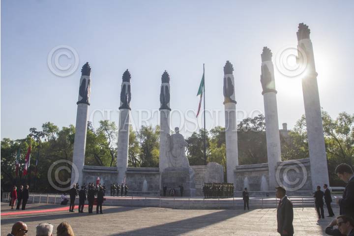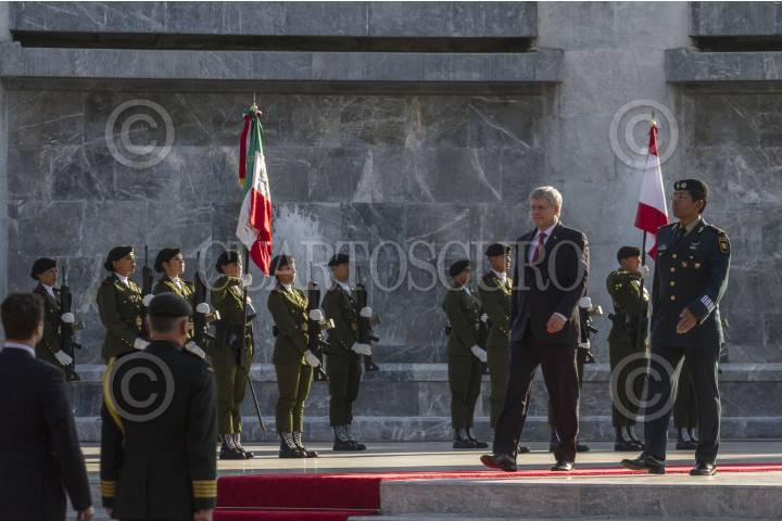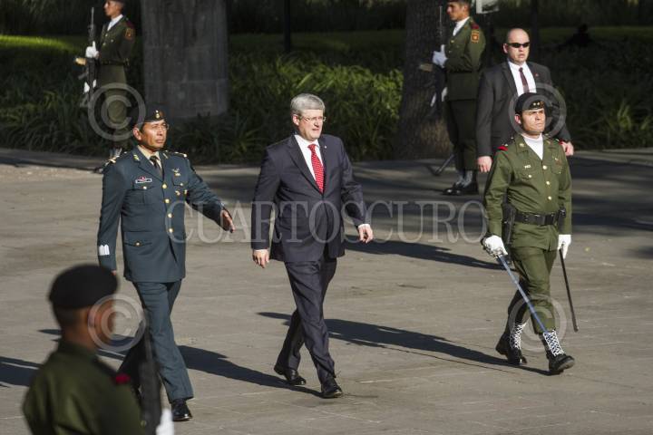 MÉXICO D.F., 17FEBRERO2014.- Stephen Harper, primer ministro de Canadá, acudió al bosque de Chapultepec, dónde colocó una ofrenda floral en el Altar a la Patria, como parte de su visita a nuestro país, donde acudirá a la reunión de líderes de América del Norte en la ciudad de Toluca, Estado de México. FOTO: ISAAC ESQUIVEL /CUARTOSCURO.COM