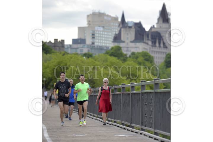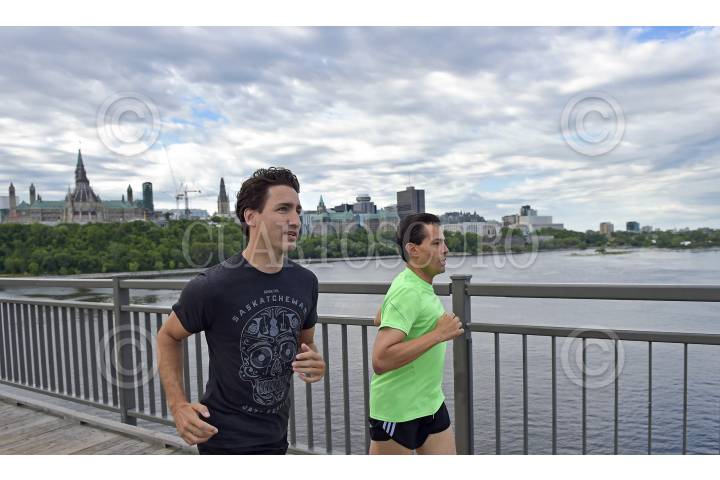 OTTAWA, CANADÁ, 28JUNIO2016.- El Presidente Enrique Peña Nieto y el Primer Ministro de Canadá, Justin Trudeau, salieron a correr esta mañana por el histórico Puente Alexandra en esta ciudad, previo a los encuentros formales que sostendrán este día como parte de las actividades de la Visita de Estado que el Mandatario mexicano realiza a este país. FOTO: PRESIDENCIA /CUARTOSCURO.COM