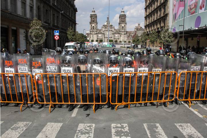 Cerco policiaco, durante la protesta de comerciantes del primer cuadro de la ciudad. FOTO: ROGELIO MORALES /CUARTOSCURO.COM